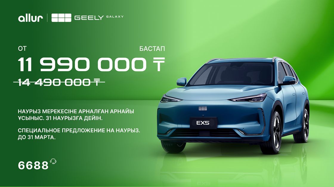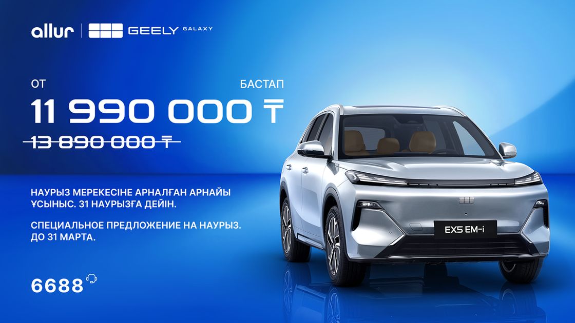Специальное предложение действует до 31 марта у официальных дилеров Geely Galaxy в 7 городах Казахстана: Алматы, Астана, Караганда, Шымкент, Кокшетау, Костанай и Актобе.