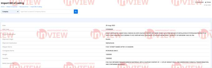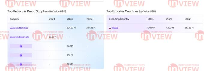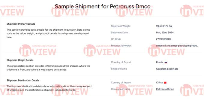 Россия является топ-экспортёром для Petroruss DMCC, а основными поставщиками значатся «Газпром нефть» и «Газпром экспорт». В одном из файлов видно, что в марте 2024 года Petroruss DMCC перенаправила от «Газпром экспорта» в Китай нефть общей массой 99,593,170 кг.
