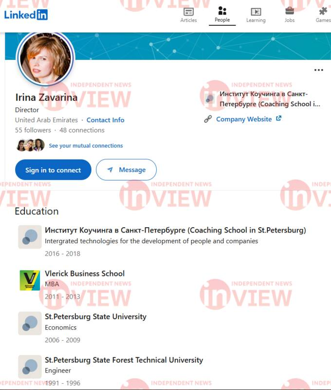 Из большого списка компаний, которые позволяют России обходить нефтяные санкции, выделяется фирма с показательным названием Petroruss DMCC. Она также зарегистрирована в районе Jumeirah lakes Towers и управляет ею гражданка России Ирина Заварина. Из её профиля в социальной сети LinkedIN можно узнать, что она родом из Санкт-Петербурга. Настоящим владельцем этой компании является упомянутый российский бизнесмен Роман Спиридонов.