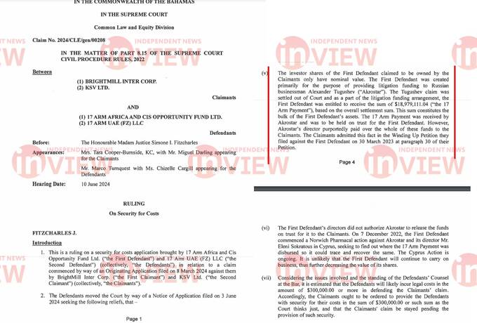 Также об их связи свидетельствует судебный документ от октября 2024 года. Иск касается выплаты, которую 17 Arm сделала в пользу Akrostar Enterprises Ltd по делу Тугушева. Киприоты должны были хранить эти деньги в качестве выплаты за предоставленные юридические услуги, но почему-то перевели их на счета других компаний с Сейшельских и Багамских островов. Речь идёт о сумме в почти 19 млн долларов, которая была выплачена юристам по делу Тугушева.