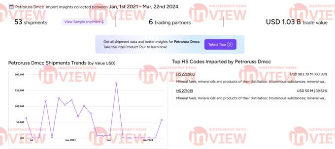 Согласно документам о торговых операциях компании Petroruss DMCC, свою деятельность она активизировала в течение 2022-2023 годов. Как раз тогда, когда начали действовать санкции против российской нефти.