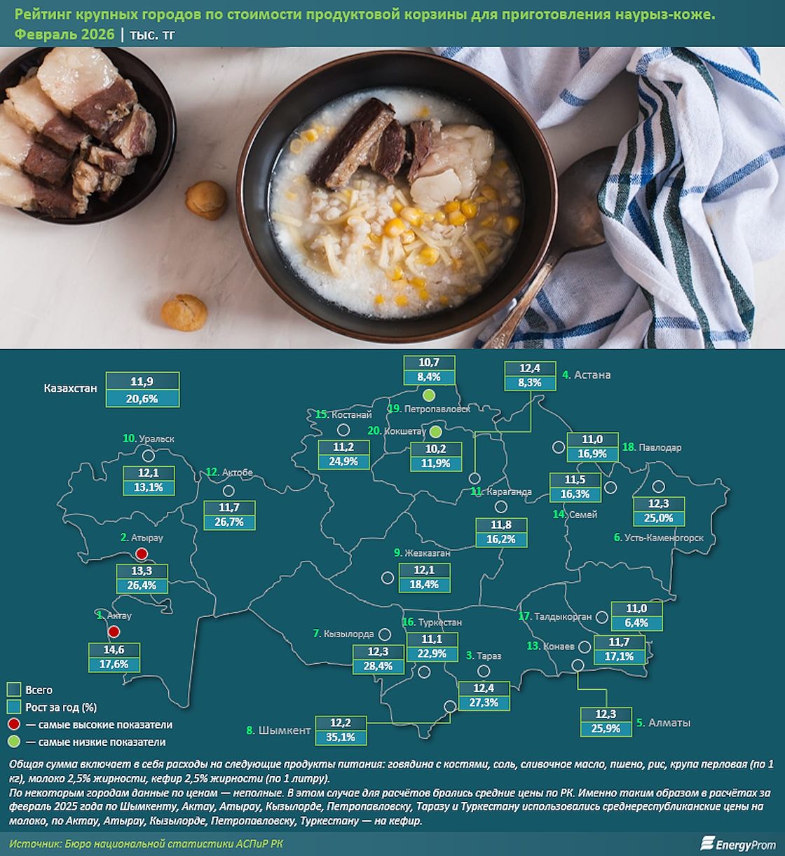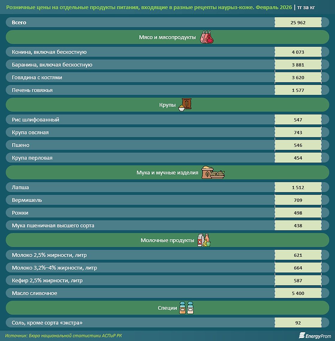 Наурыз коже в 2026 году выйдет дороже, чем раньше. Цены на продукты для главного праздничного блюда в Казахстане выросли в среднем почти на 21%. Подробности читайте в материале NUR.KZ.