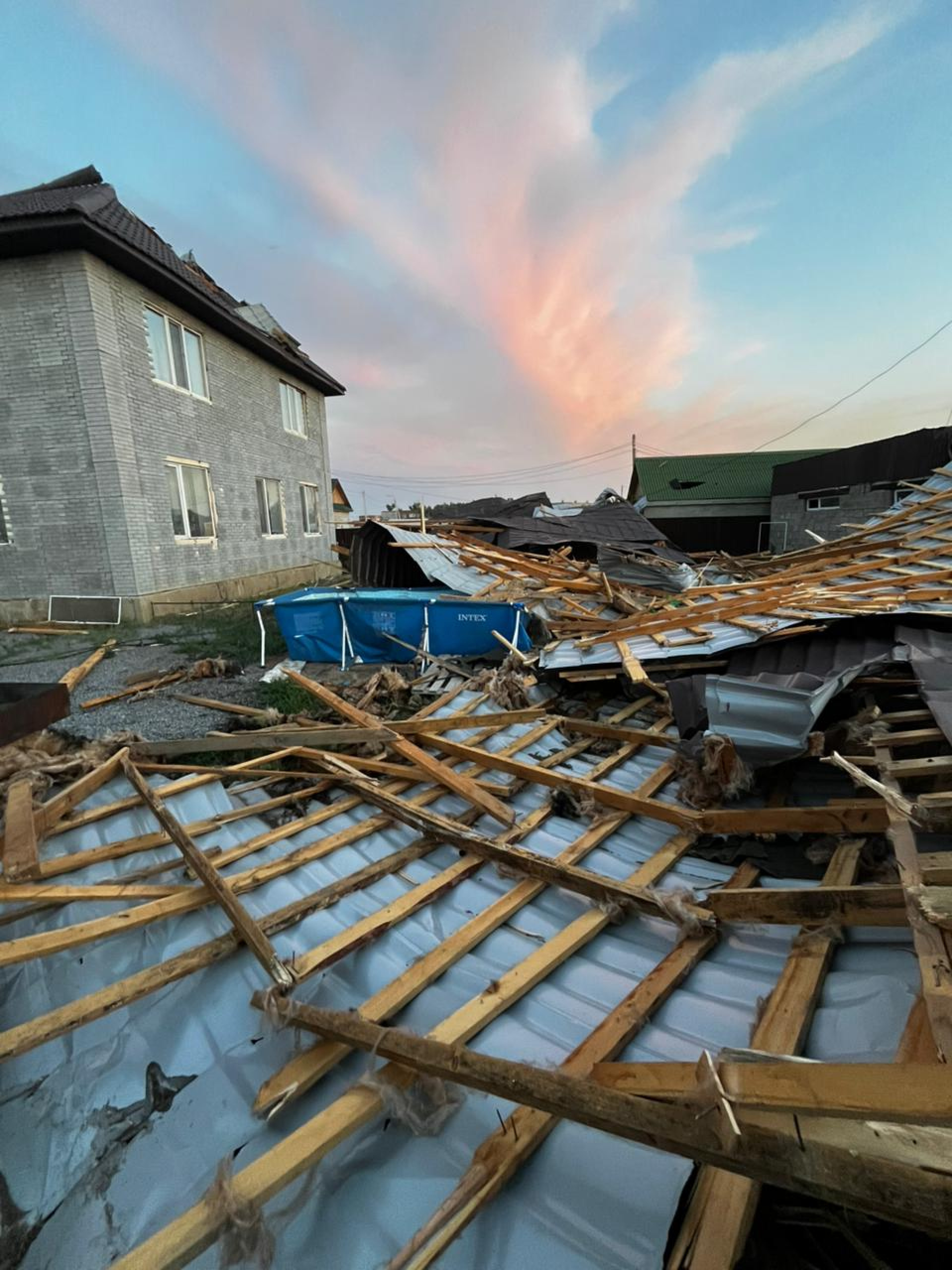 Двухэтажный дом 43-летней Жанар Козгамбаевой пострадал 19 июня 2025 года. Сорванная ветром часть крыши частного предприятия упала во двор её дома, повредив автомобиль, детскую площадку, бассейн, огород и хозяйственные постройки. Сильнее всего пострадала кровля дома.
